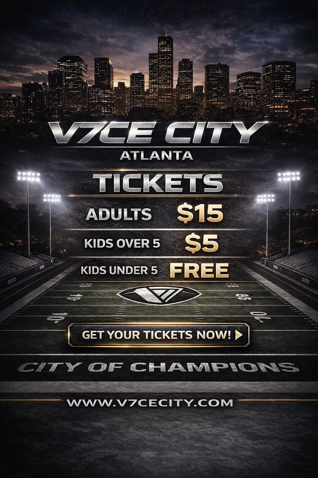 Purchase your tickets online in advance for a faster, hassle free entry. Skip the lines at the gate and lock in your access to the V7CE City showdown.